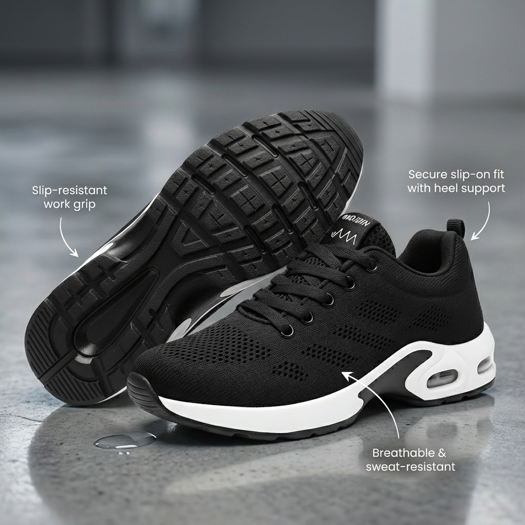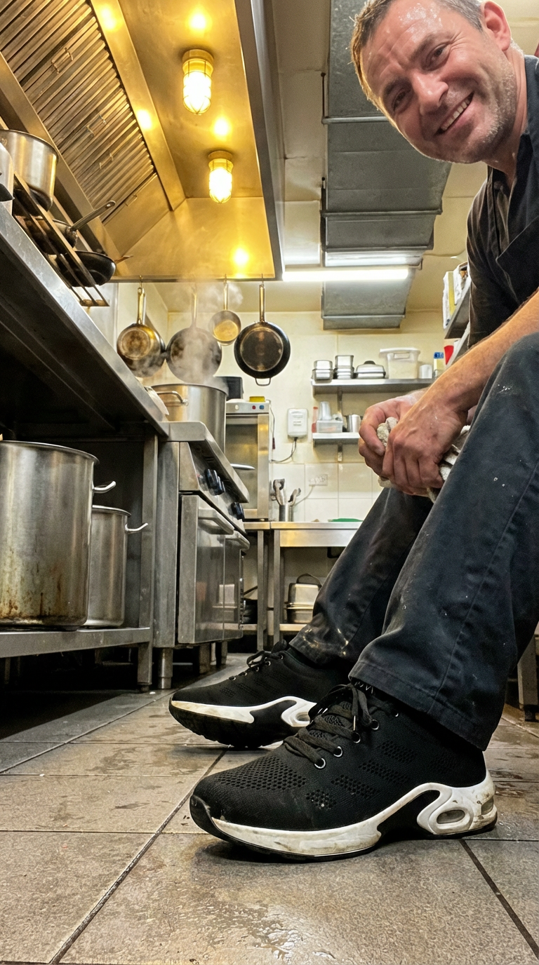 Most shoes are built for casual walking — not slippery kitchens, polished hospital floors, or hard warehouse concrete.