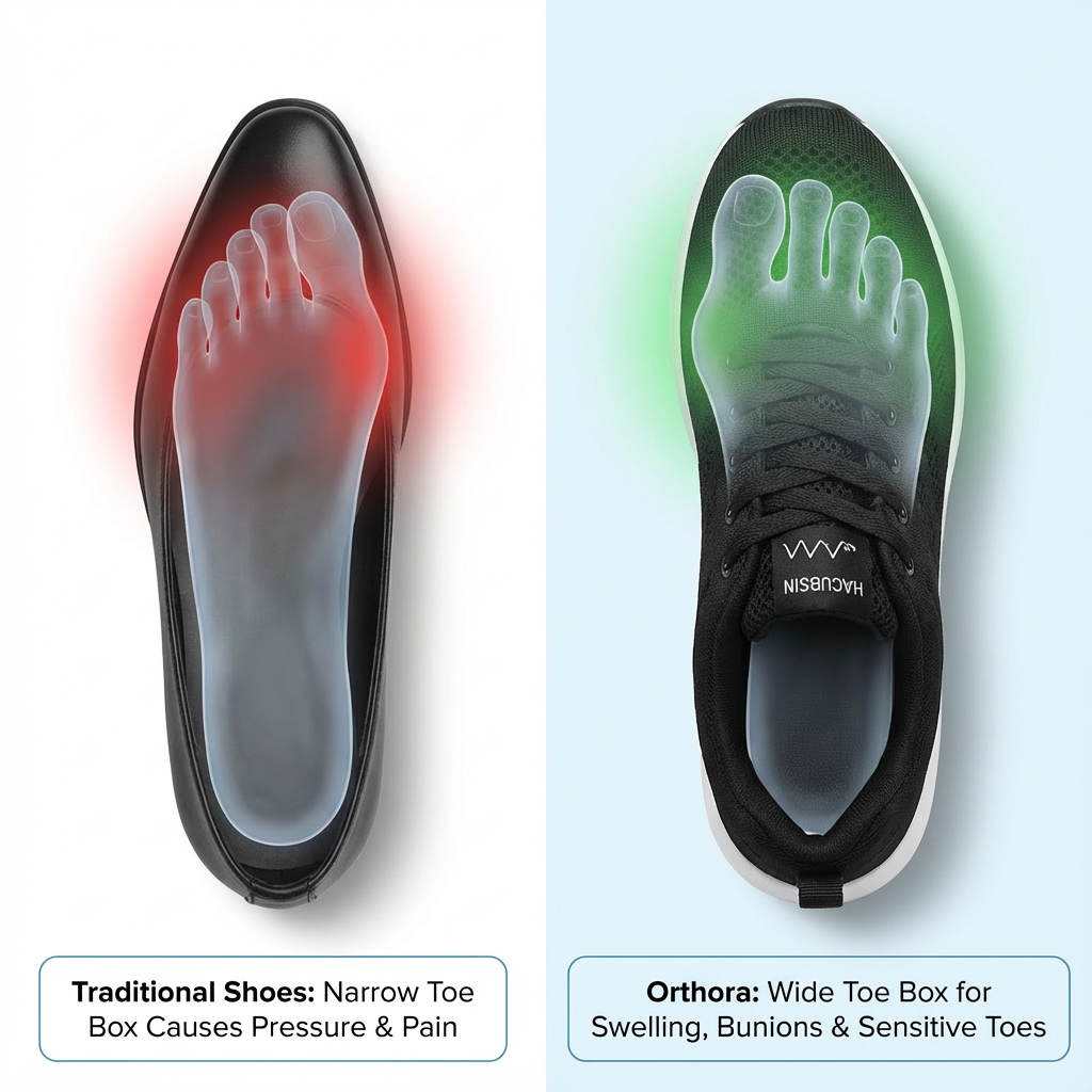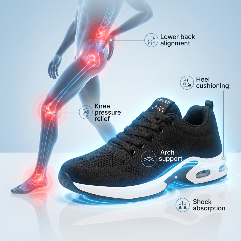 With reinforced cushioning, a wide anti-squeeze toe box, breathable mesh, and podiatrist-designed support, it keeps feet aligned, supported, and pain-free all day.